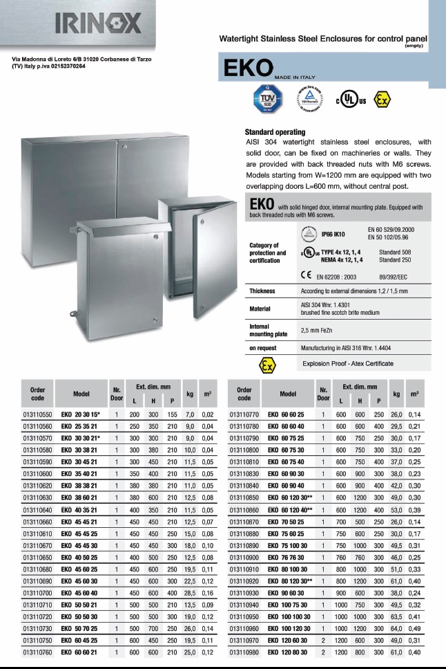 EKO EX.PROOF STAINLESS STEEL ENCLOSURES Files To Download